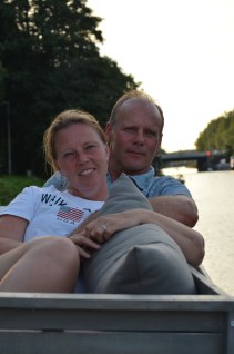 Jess ligt op t voordek te bakken, Ed stuurt ik zit ernaast het is echt heerlijk en zo gezellig samen.