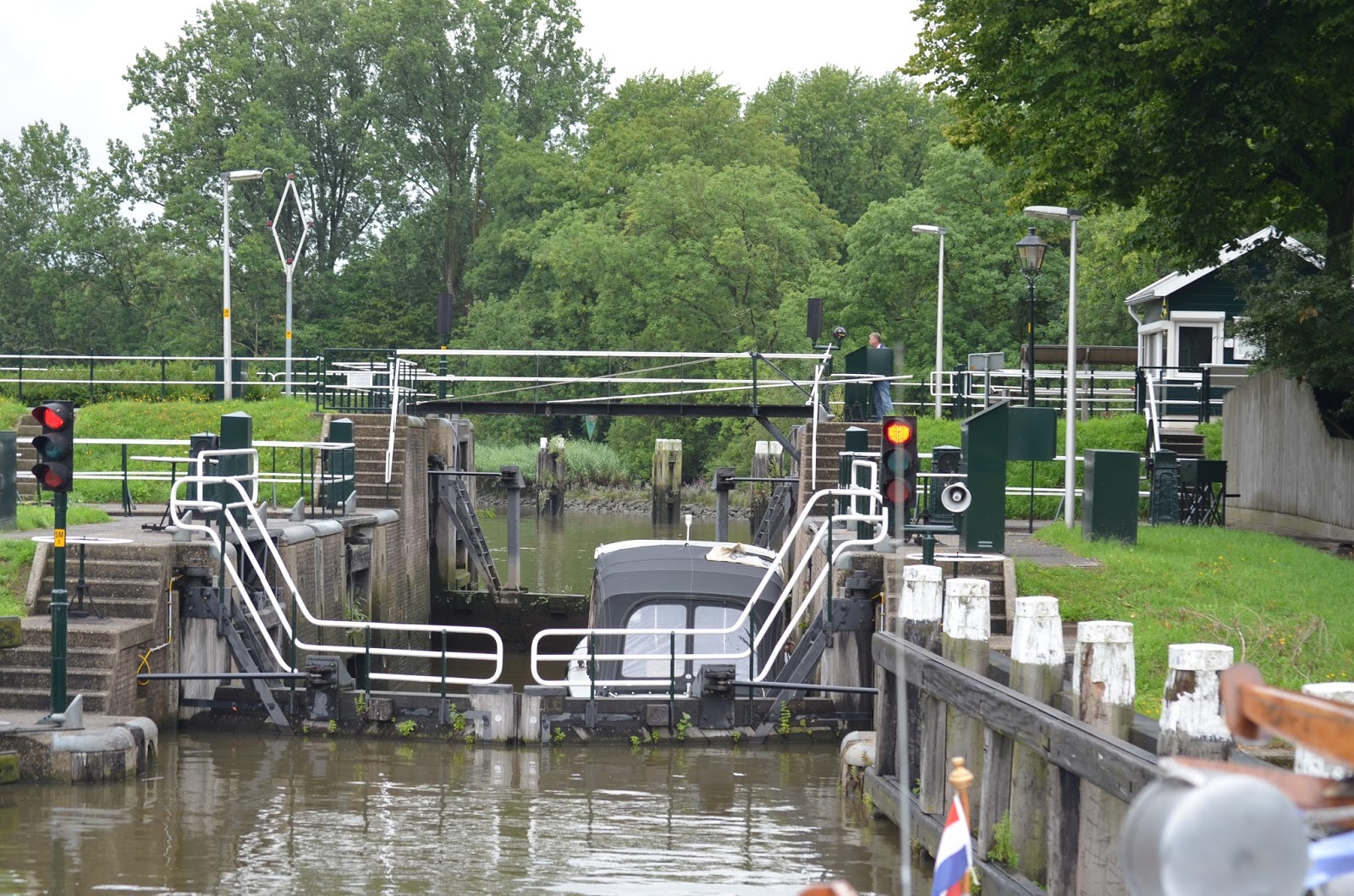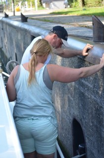 We pakken eerst de Waaiersluis, waar Jess het touwwerk al heel goed onder de knie heeft