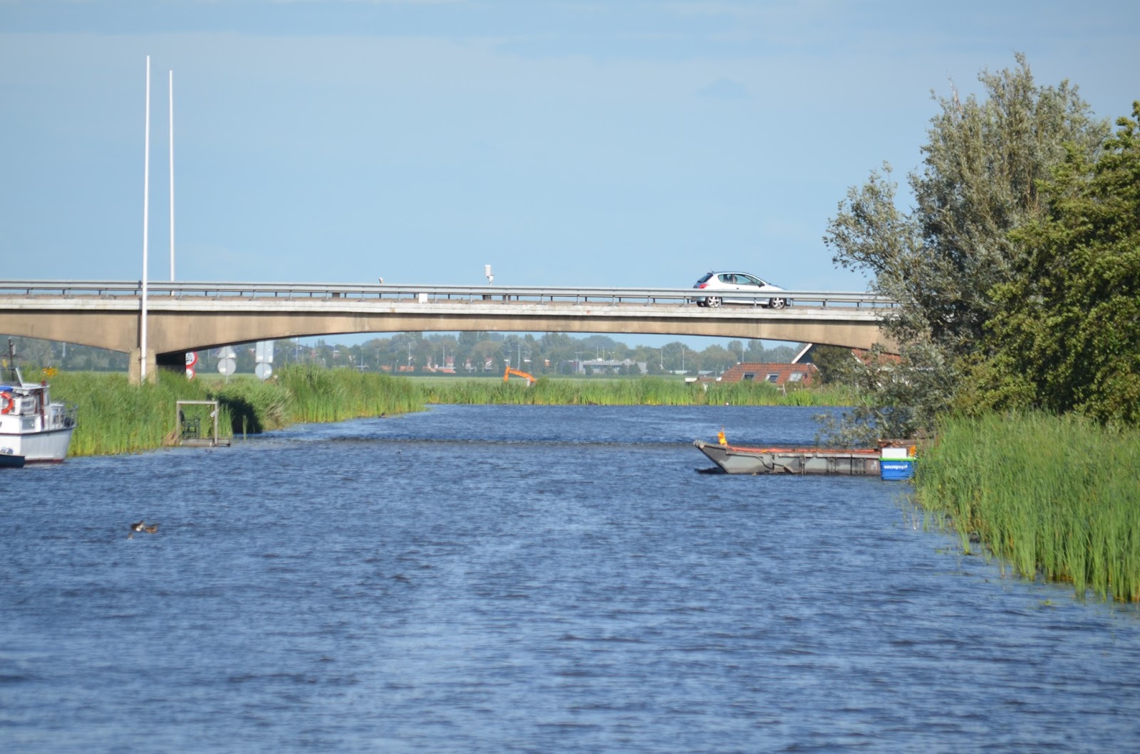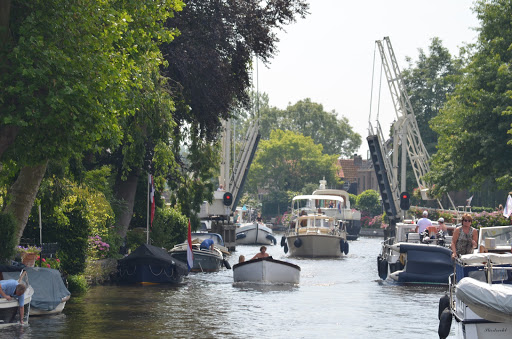 Bij de Leimuider brug moeten we een half uur wachten maar dat is geen probleem want de zon schijnt.
