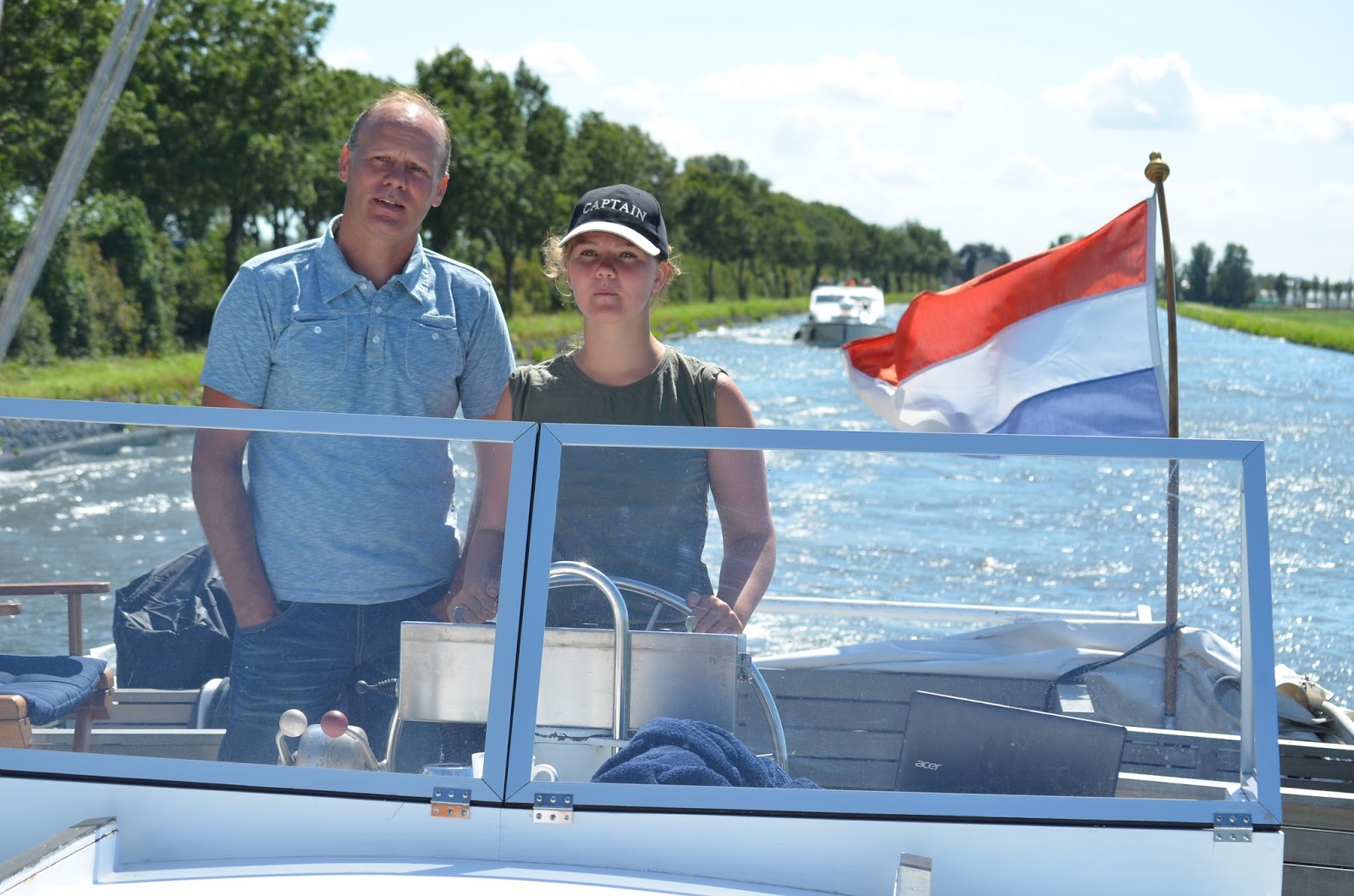 Iedreen heeft ook de gewoonte op het water om naar elkaar te zwaaien maar het wordt pas echt erg als alle brugwachters en fietsers naar je gaan zwaaien.