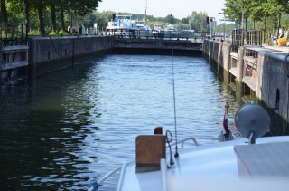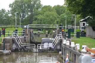 Na de Drecht komen we bij de eerste sluis om de Amstel op te gaan.
