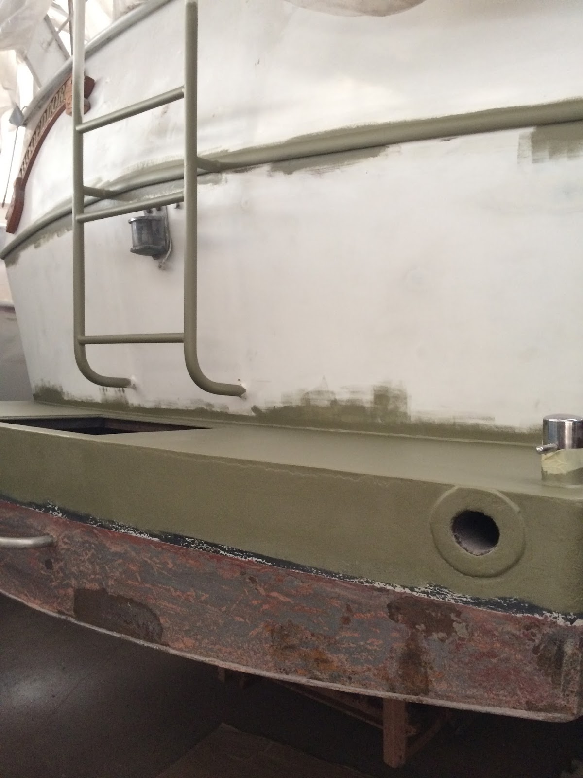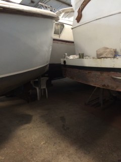 Ik begin met het schuren van Vegas, de hele buitenkant moet worden geschuurd want we gaan hem dit jaar schilderen. Over de kleur zijn we uit, althans we denken dat het donkerblauw wordt en het bovendek maken we wit.