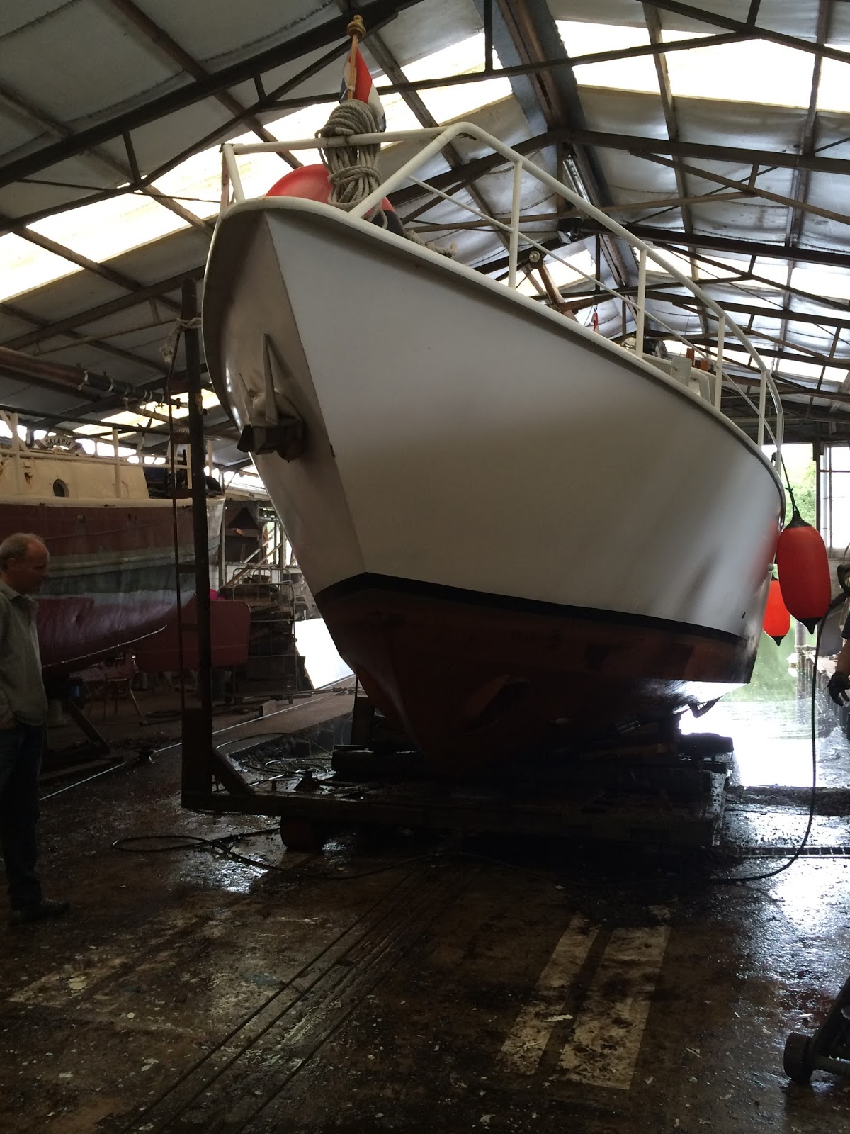 De wit geschilderde gehavende bolders worden van het dek geslepen. Ook het voor hek op de boeg die veel roest heeft gaat eraf. Net als de zij hekjes. Deze op een neer hekjes waren geschilderd maar zorgde voor constante roestvorming. Een zwak punt op de draai gedeelte dus daar komen nieuwe rvs delen over.