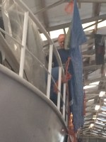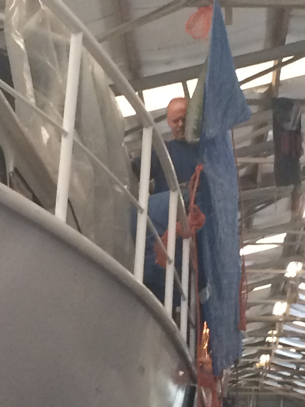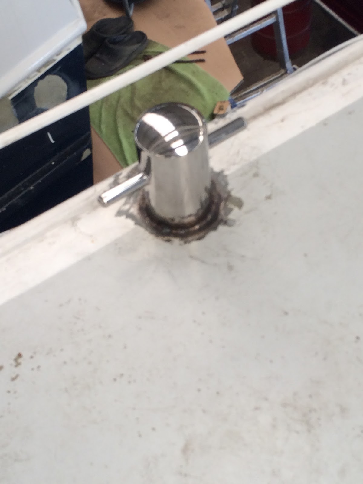De mastvoet is geschilderd die gaan we laten stralen rvs, eerst de afbijt er over heen om de nodige vele lagen verf eraf te krijgen.
