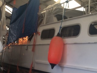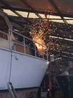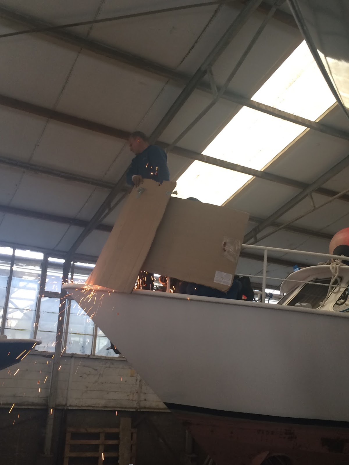 Omdat we maar een paar weken zelf mogen lassen en slijpen in de loods, ivm binnenkomst andere schepen, gaan we gelijk van start.
