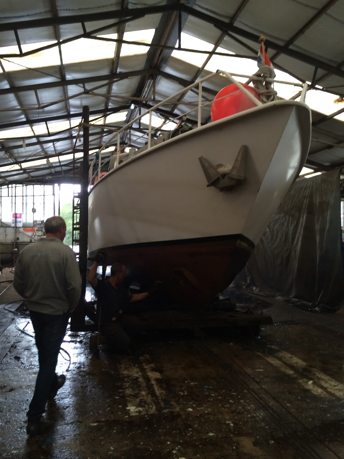 De mast gaat eraf die moet worden geschuurd en geschilderd ook hebben we door laag hangende takken het toplicht eraf geramd, dus ook die moet weer netjes worden gemonteerd.