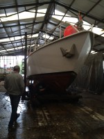 In de tussentijd, begin ik met het onderwaterschip, deze moet flink worden aangepakt. De oude lagen anti fouling moeten eraf.