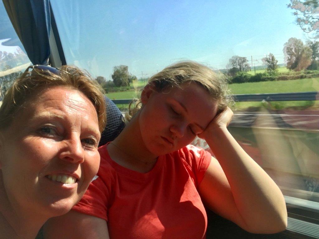 Alles komt uiteindelijk goed we zitten in de bus onderweg naar Rome. Daar wordt door sommige van ons nog even een power napje gedaan.