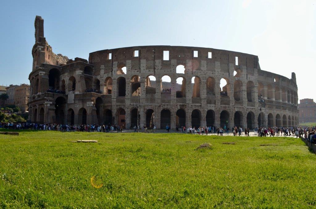 “Ik zeg hup kleding aan en gaan, gooi maar wat in de tas maar we gaan het hoe dan ook halen”. Het vertrouwen lijkt niet erg groot maar ik blijf positief en heb voor hetere vuren gestaan. Ongekamde haren, ongepoetste tanden en op hoop van zegen of we de juiste spullen mee hebben komen we in het theater aan. Daar wacht een enorme massa mensen op ons die ons aanstaren alsof we aliens zijn. De mega rij voor ons om ons aan te melden voor onze shuttle naar Rome (70 km van Civitavecchia) doet me lichtelijk de moed in de schoenen zakken. Ik struin de rij voorbij en vraag in mijn beste en vriendelijkste Italiaans of we nog mee kunnen of te laat zijn voor de shuttle. We kunnen nog mee want er gaan nog meer bussen blijkt, dus hup terug de rij in en dan ons aanmelden.