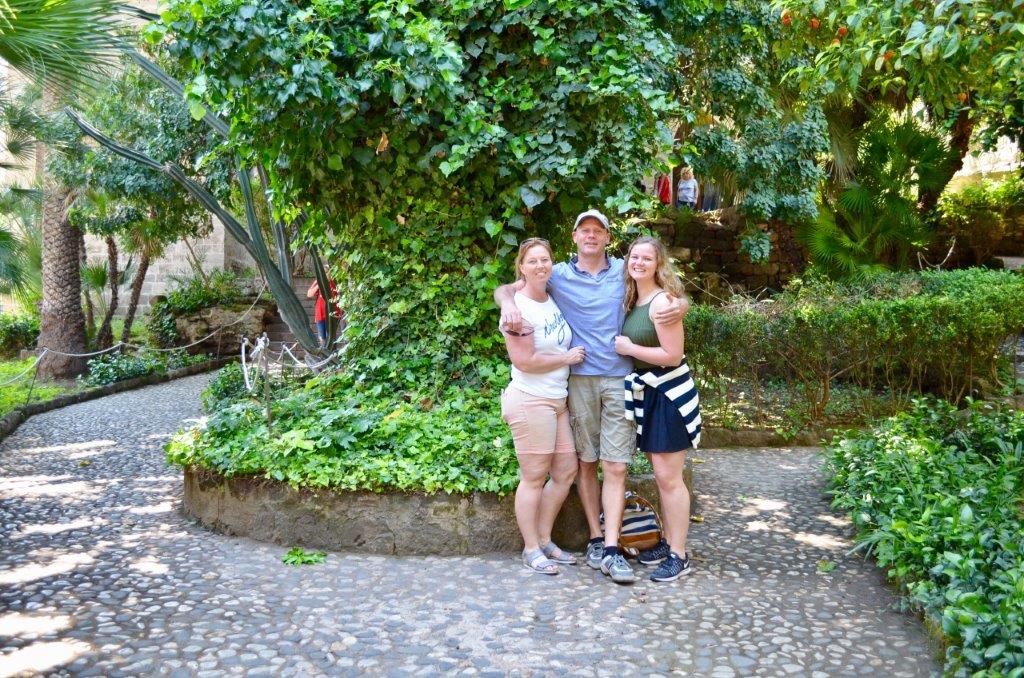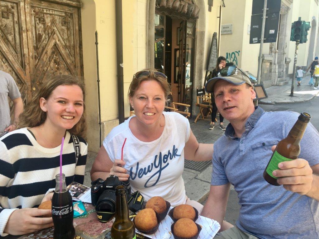 De keuze aan het ontbijt is wederom enorm, we zitten aan tafel met een jong Amerikaans stel uit het leger en hebben gelijk een klik. We lachen heel wat af en dat vroeg op de ochtend. Ze wilden samen een taxi te delen maar ik geef aan dat dat niet echt nodig is omdat het maar een kleine wandeling is van het schip naar het oude centrum. We besluiten evengoed samen de dag door te brengen en hebben echt verrassend een enorme leuke dag. We bekijken de stad met Abby en Jaimy, gaan naar een prachtige tuin waar het heerlijk koel is. Abby probeert nog even een gestolen mandarijn uit de tuin maar die blijkt vreselijk goor. We vragen ons af of we een wc route moeten gaan uitzetten maar gelukkig valt het mee. Zij willen een lokaal gerecht proeven Arancini, een soort rijst oliebol gevuld met groenten, vlees of zoetigheid. We vinden een geweldig tentje met plek buiten en in iedereens enthousiaste bui bestellen we er allemaal 2.