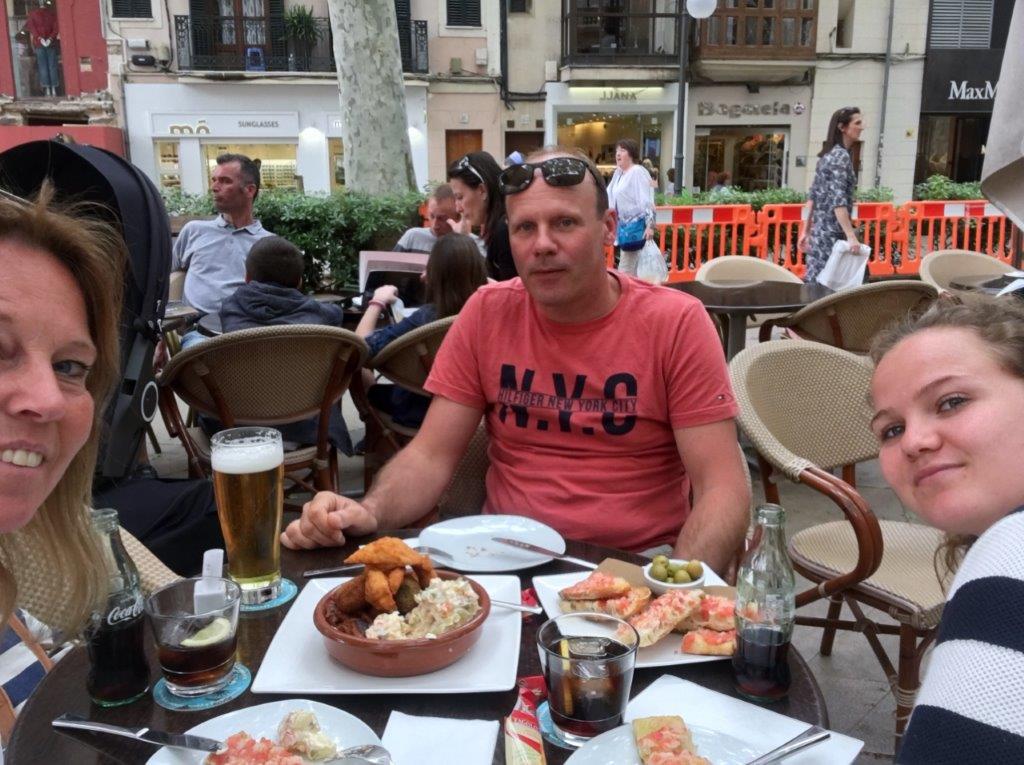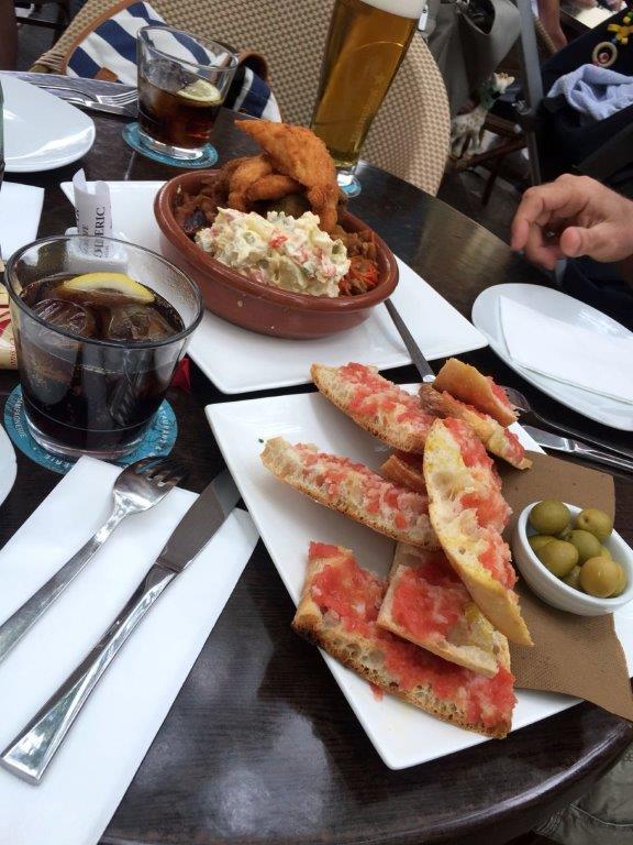 De zon brandt enorm fel en ooooh wat is het lekker. Het eiland ziet er enorm mooi uit het sterft er wel van de Duitsers. Na de route die erg afwisselend is, besluiten we bij de eindhalte tevens begin uit te stappen en ploffen we neer op Palma de Rambla. Het lijkt enorm veel op de Ramblas in Barcelona. Het is er net zo gezellig alles dan wat kleiner. We bestellen tapas bij de Gastrobar op de Rambla.