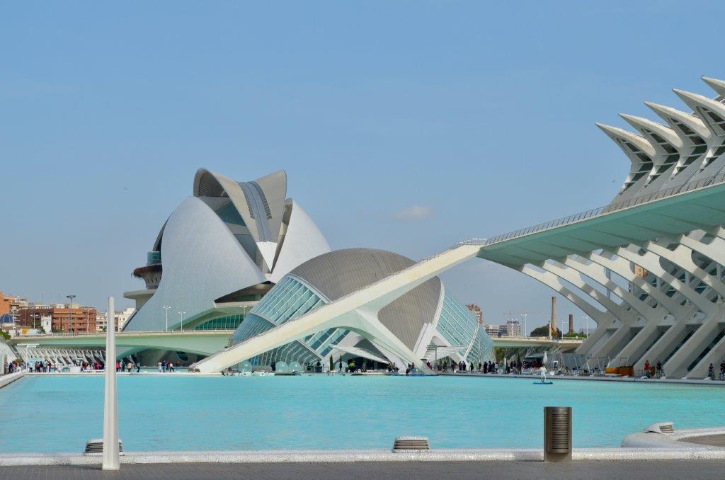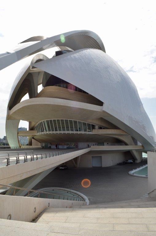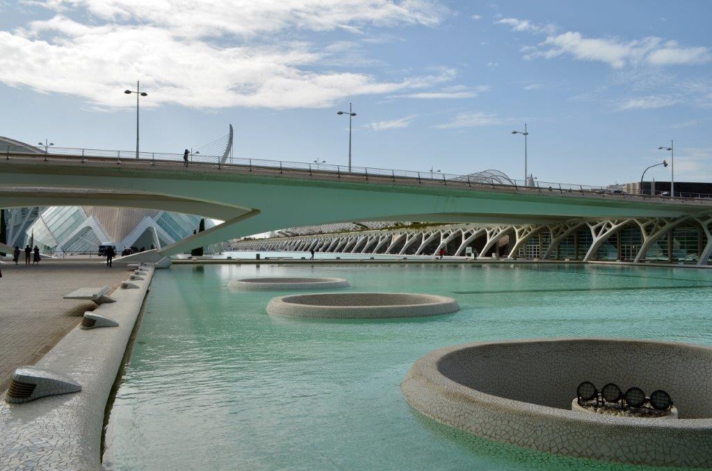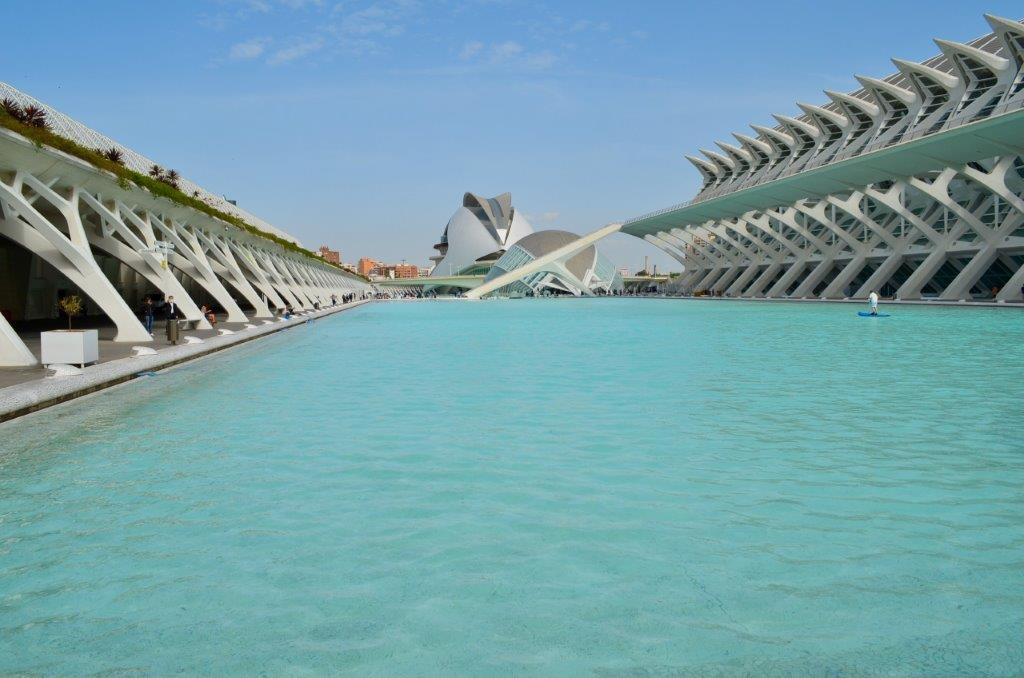 Valencia is echt prachtig als we bij het museo Fallero komen besluiten we uit te stappen om daar eens te gaan rondkijken. De Ciut de les Arts i les Ciencies is mega indrukwekkend en groot. Het gebouw wordt omringd door parken en waterbassins en heeft een minimale afmeting van 2 km. Het is echt enorm indrukwekkend. Het enige bizarre hieraan is, is dat niemand in het prachtig aantrekkelijke zwembad ogende water bassin mag. Geen idee waarom, er zijn wel wat bootjes en er mag gesubd worden maar zwemmen, ho maar!