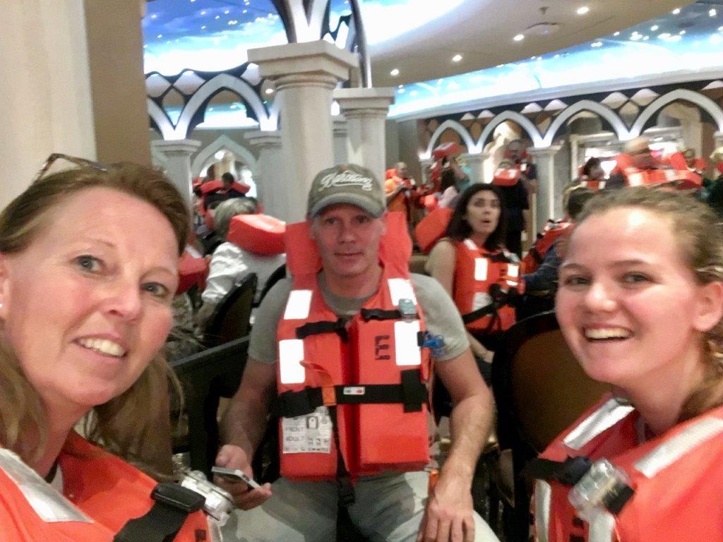 De vakantie was nu echt begonnen. Na een paar drankjes en wat in de zon te hebben gezeten ging het grote alarm af op de boot, maar geen enge toestanden hoor, het was een verplichte redding/evacuatie oefening waaraan elke passagier mee moet doen.