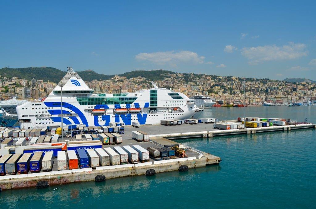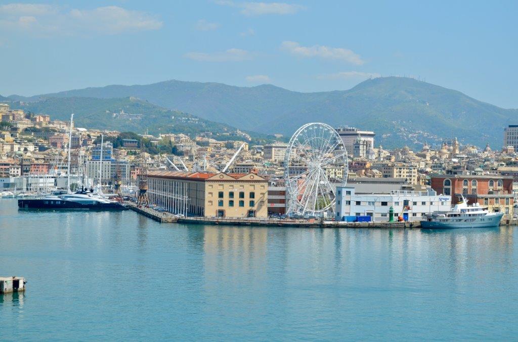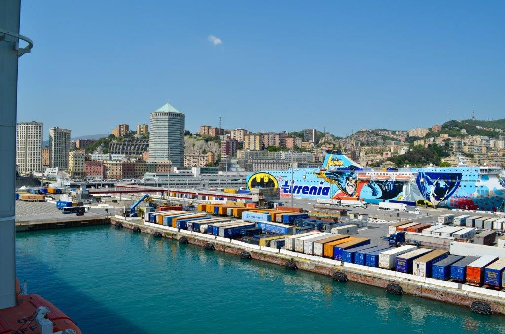 We kachelde lekker door en er was niet al te veel verkeer, eenmaal richting Zwitserland, begon de Duitse navigatie Fraulein steeds meer te snauwen dat we af moesten slaan en wilde ze ons door Frankrijk leiden. Maar de eigenwijze kaaskop hield vol “Nee we moeten door naar Zwitserland”. Het werd een soort NL-Duitsland spelletjes zoals we dat kennen van de voetbal. De Fraulein ging naar mijn gevoel steeds harder snauwen, de kaaskop werd steeds koppiger en de tijd liep al maar op en de bestemming verdween steeds verder uit het zicht. Eerst zouden we belachelijk vroeg aankomen in Genua, maar dat was geen probleem zo konden we rustig de stad nog in en zo zagen we de vertrektijd van de boot nog net niet in gevaar komen.