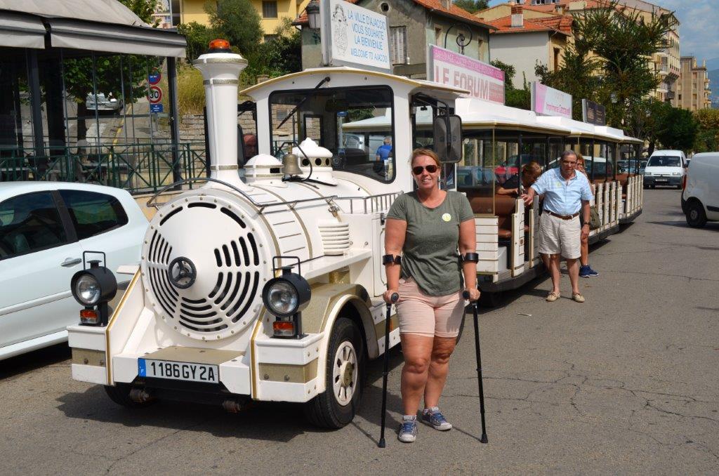 De haven van Ajaccio is niet groot maar wel mooi we liggen direct aan de kade en kunnen zo de stad in. Er is zodra je aan wal komt aan de linkerkant een hele leuke markt met lokale producten. Ook zien we dat er vanaf deze kant diverse excursies worden georganiseerd door de lokale bevolking. Maar wij kiezen wederom voor het toeristen treintje. We horen dat deze pas om 2 uur gaat dus we hebben nog even. We wandelen wat heen en weer dan ineens begint het donker te worden en valt er een bui van 10 minuten. We schuilen ergens op het terras met wat te drinken, scoren ook nog een paar schoenen en dit keer voor mij!