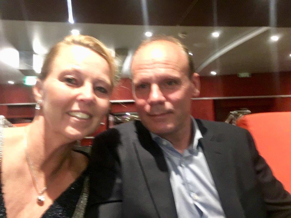 De heer en dame weigeren al vanaf dag een naast elkaar te zitten. Misschien is dat normaal gesproken geen probleem maar in dit geval veroorzaakt het toch wel bijzondere momenten. Voorbeeld, de fotografen lopen elke avond door de eetzaal en zetten alle stellen op de foto. De dame en heer in kwestie zitten allebei aan het uiteinde van de tafel. (Ik dus naast de heer.) De fotograaf wil ons beide op de foto zetten maar durft niet zijn duidelijk brandende vraag te stellen of wij bij elkaar horen. Het leeftijdsverschil geeft wel een vraagteken beeld. Hij zet ons samen op de foto, ik vind het hilarisch en andere lachen ook mee, behalve de echtgenote van de heer dan. Manlief gooit nog een schepje kolen op het vuur erbij door samen met de man uit Dordrecht op de foto te gaan en te zeggen dat zij ook een setje zijn.