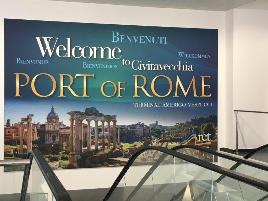 De volgende ochtend ontbijten we op het gemak terwijl iedereen al in Rome zit en dan wandelen we richting de bus om ons af te laten zetten aan het einde van de haven. Want we mogen niet door de haven heen lopen van de autoriteiten.