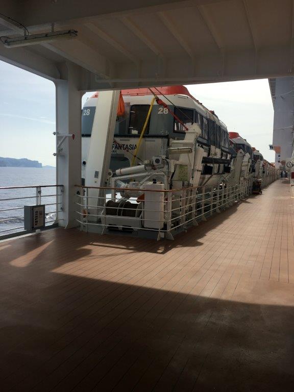 Vandaag vertrekken we richting Cannes in Frankrijk 107 nautical miles. 1 ntm = 1,85 km het weer is goed ons humeur nog beter en dan klinkt de 7 tonige alarm toeter. We zijn inmiddels in de hut en de zwemvesten liggen op de bovenste plank van de kast. Nou dat begint al lekker ik kan er niet bij dus conclusie ik ben feitelijk ten dode op geschreven. Gelukkig red manlief mijn leven en pakt mijn zwemvest om zo naar de aangegeven verzamelplaats te lopen. Vooral kalm blijven en rustig lopen want het is een oefening. In werkelijkheid zal ik waarschijnlijk over iedereen heen tijgeren of vanaf ons balkon naar beneden jumpen. Helaas hebben we onze joker niet mee (danseres dochter moest naar school in Paris) dus eindigen we dit keer niet met de hele familie en de kapitein als eerste in de reddingssloep ben ik bang.