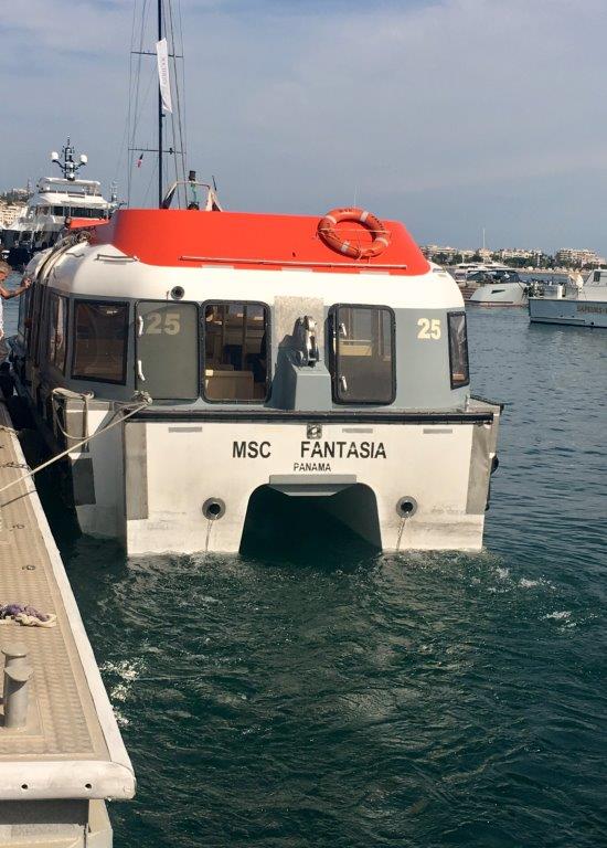 De volgende ochtend worden we gewekt door het geluid van afmeren, hekschroeven en havengeluiden. Het is al vroeg als we in Cannes aankomen 7.30 dus maken we ons klaar. De gordijnen gaan open en man wat een heerlijk uitzicht! We liggen voor de kust, ik neem aan dat in de haven onbetaalbaar is en na het ontbijt hebben we een tenderboot voor 10.30 gereserveerd. Het is een van de reddingsboten die ook wordt ingezet voor het heen en weer pendelen van passagiers als de boot niet aan de wal kan afmeren om wat voor reden dan ook.