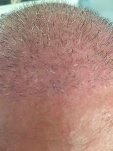 De eerste 5 dagen was het behoorlijk zichtbaar dat er iets was gebeurd, maar na 5 dagen dachten de mensen enkel dat mijn man een weddenschap had verloren en zijn kop had kaal geschoren 😉