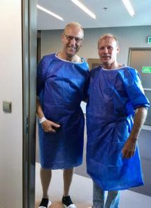 Onze vriend ondergaat zo het zelfde proces maar dat krijgen wij niet helemaal mee omdat de artsen met beide mannen druk aan de slag zijn. Dan nemen de mannen even afscheid van elkaar. Wij vrouwen dachten de dat we afscheid moesten nemen, maar niets bleek minder waar.
