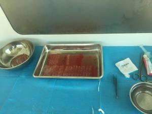 Ik haal nog even de telefoon uit het kluisje van mijn man, want je krijgt een ook een kluis waar je alles in kwijt kunt. Ik mag zelfs mijn telefoon een opladen met een snoer van een van de artsen die mij vol trots de schaal met grafts laat zien van manlief.