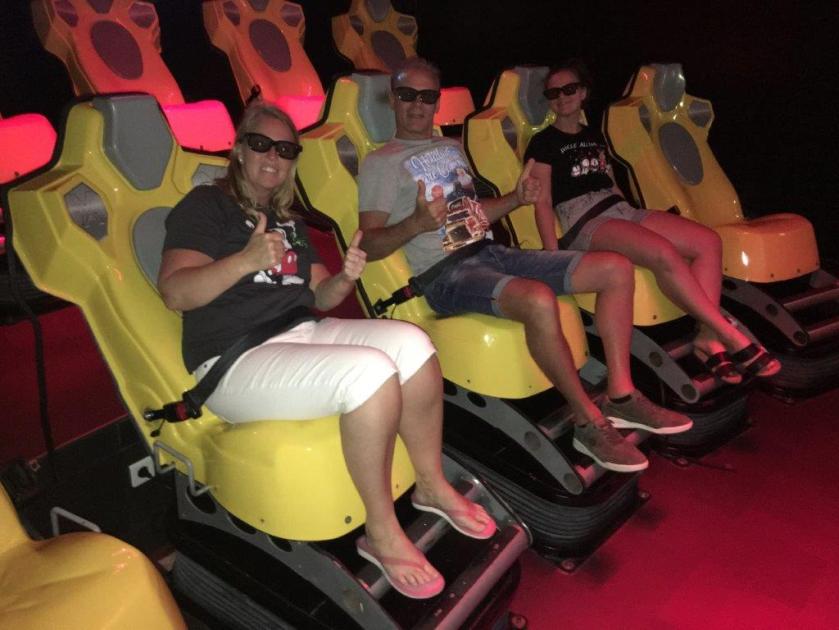De lichten gaan aan we moeten naar rechts zitten de deuren worden handmatig geopend er komt een trap en begeleiding en dan worden we één voor één gered. We waren al bijna door de attractie heen en als tegemoetkoming krijgen we zelfs een Fastpass, dus als een kind zo blij, een gratis behind the scene tour en een fast pass wat een verhaal.