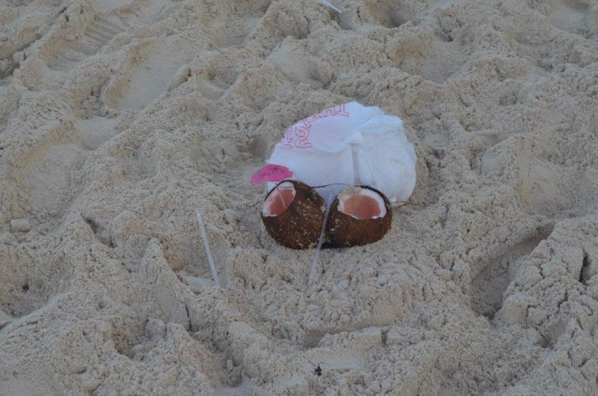 Er was toch geen verstoppen aan, de golfkarretjes met beveiliging raasde over het eiland op zoek naar verstekelingen.