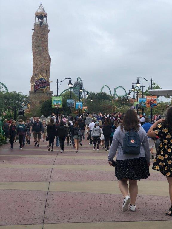 De gratis shuttle brengt ons naar het park ze zijn nog geen half uur open en dan zien we dat de rijen van 2-3 uur minimaal geen uitzondering zijn. Hoe kan dat, nu al?