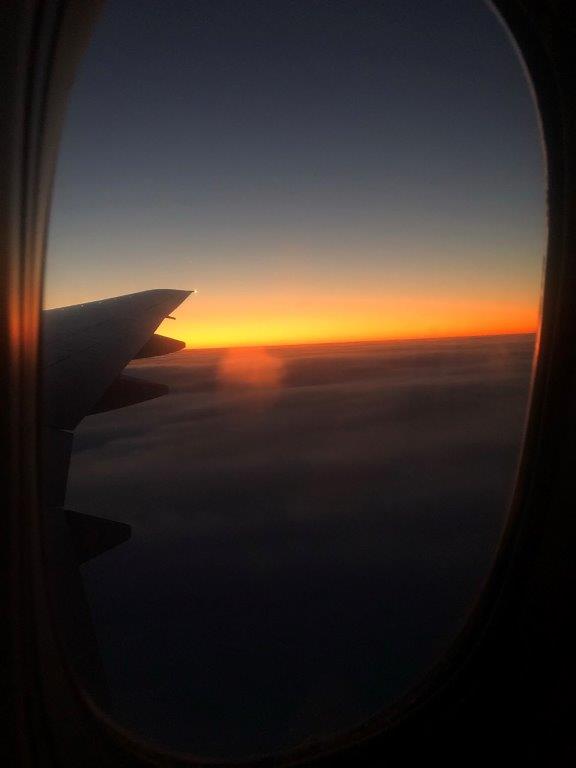 Toch gaan we omhoog, de piloot biedt ook hier op voorhand excuses aan. We schijnen ook onderbemand te zijn qua stewardessen wegens ziekte. Verschillende keren komt een steward zich achter ons in de wc leeg kotsen.