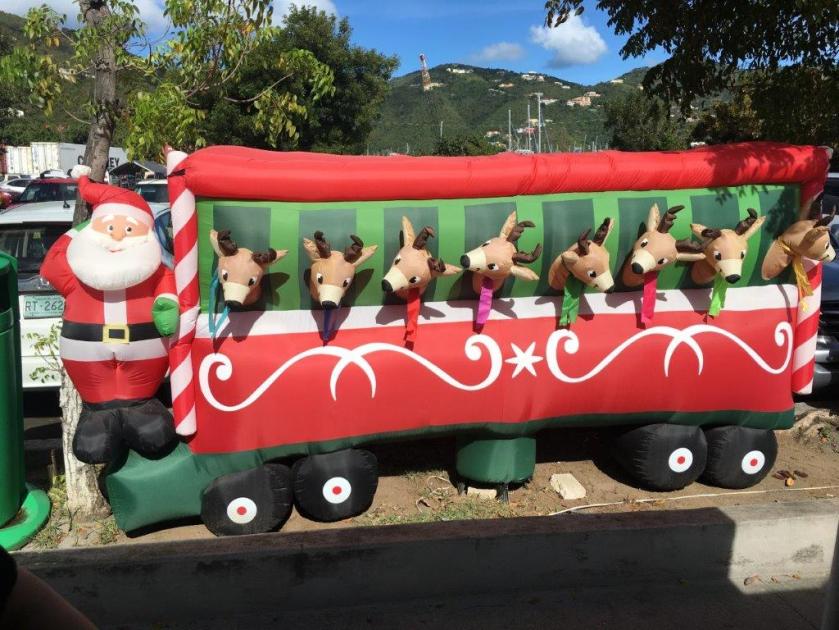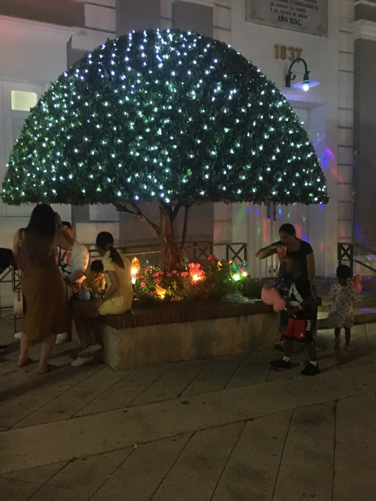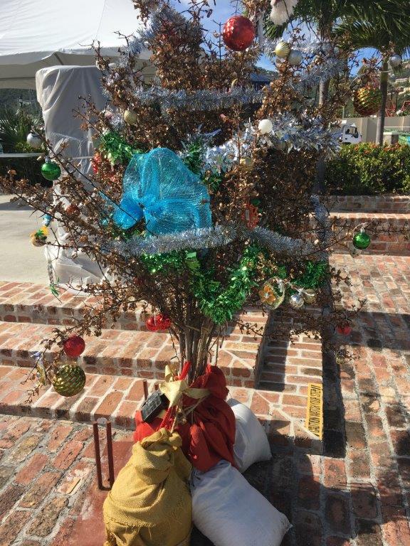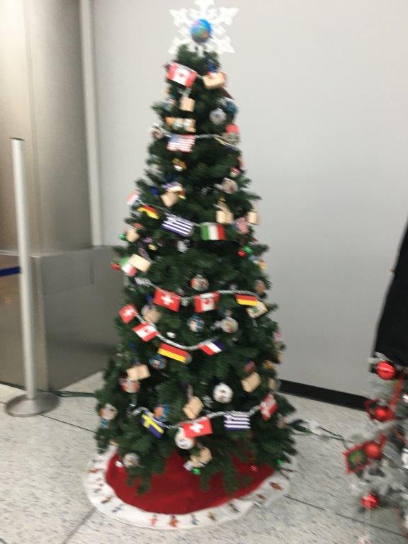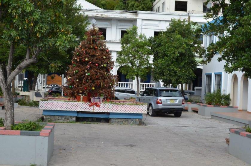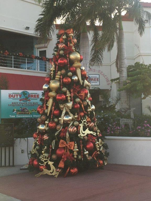 Bij het zien van de eerste de beste kerstboom namen we gelijk de gelegenheid om een kerstplaatje te schieten, heerlijk in onze t shirts bij de kerstboom terwijl het thuis wegspoelt.