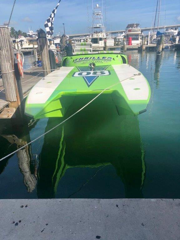 We kochten tickets voor de speedboat tour die overigens niet duurder waren dan op het internet en liepen door naar de plek van vertrek, daar lag het groene race monster al op ons te wachten.