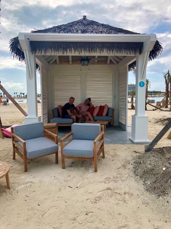 Het privé eiland was net opgeleverd dat was duidelijk zichtbaar er moest nog veel gebeuren en de boel moest nog flink groeien. Ze waren al een heel eind op weg toen het eilandje dit jaar keihard getroffen werd door Orkaan Dorian en daarvoor door orkaan Irma. Maar ondanks dat zag het er al geweldig uit. Overal stonden palmen, witte stranden, blauwe baaien, hangmatten en heerlijke tropische muziek.