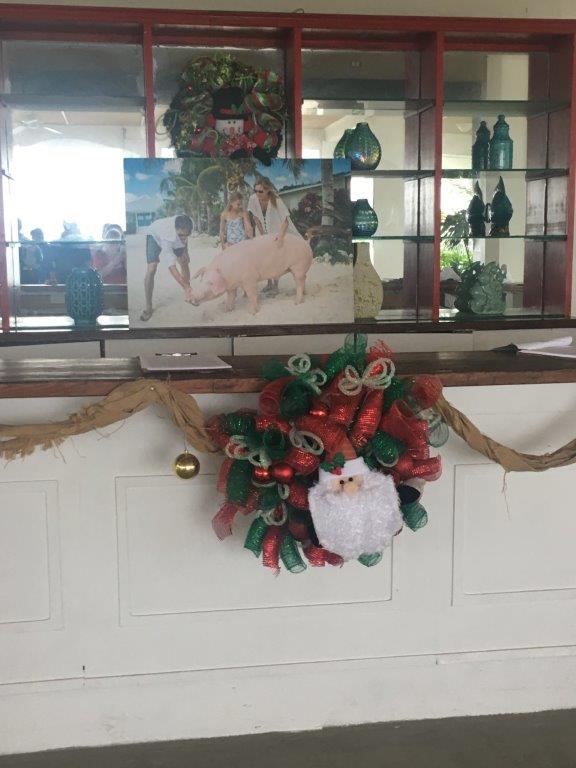 Toen we de volgende dag in Nassau arriveerde barstte de hel los, het werd echt noodweer !!!! Het stormde en regende zoals ik dat zelden eerder heb gezien en guess what ? Wij hadden een X-Mas surprise excursie gepland voor dochterlief naar Balmoral een van de mooiste privé eilanden in de omgeving, om daar te gaan zwemmen met miss Piggy.
