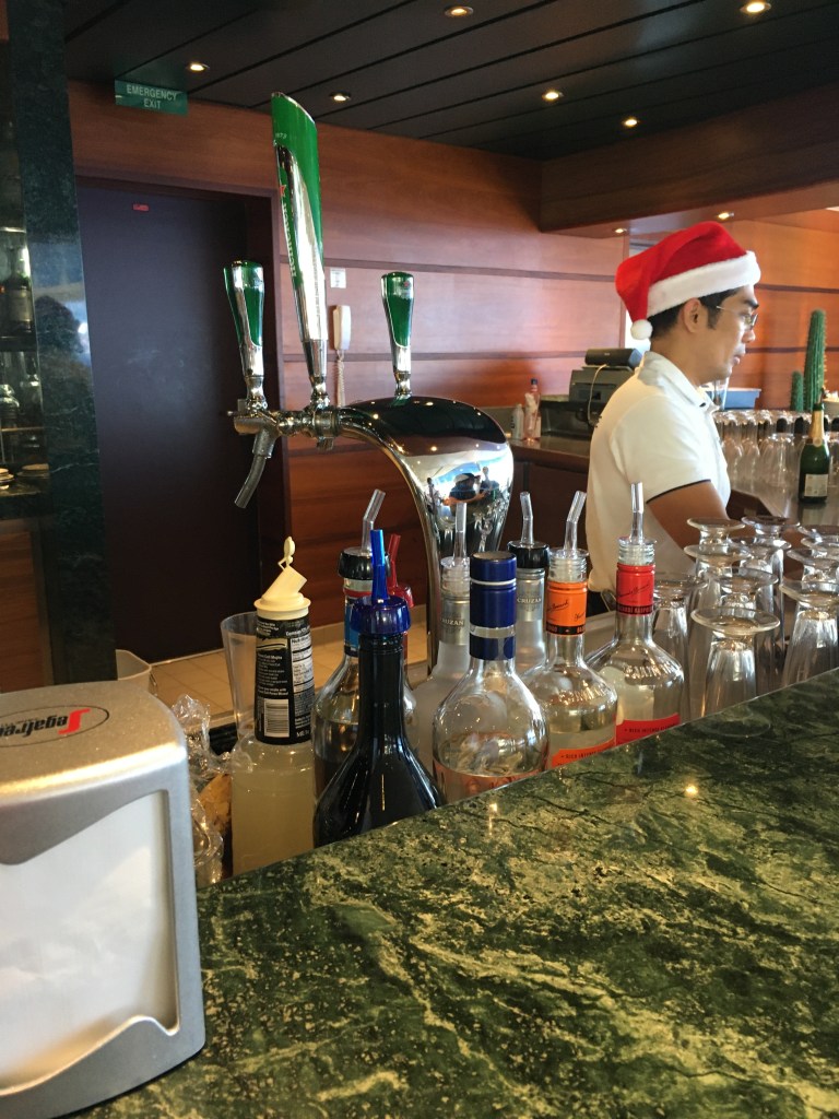 Eenmaal terug in het hotel wachtte de shuttle op ons, deze bracht ons 3.5 km verder de haven in waar we moesten inchecken voor de cruise. Daar aangekomen stond er een enorm achterlijk lange rij, maar via social media waren we al op de hoogte gesteld door mede passagiers en waren we hier inmiddels op voorbereid. De rij was enorm maar liep best goed door en ach.. het is december we zijn in Miami en gaan op cruise en de zon schijnt, buiten het gebouw dan wel.