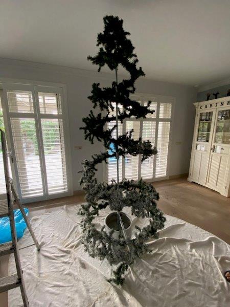 Dus ik heb mij laten inspireren op het internet en kwam op deze variant uit. Na lekker knutselen is dit uiteindelijk mijn boom 2020 geworden.