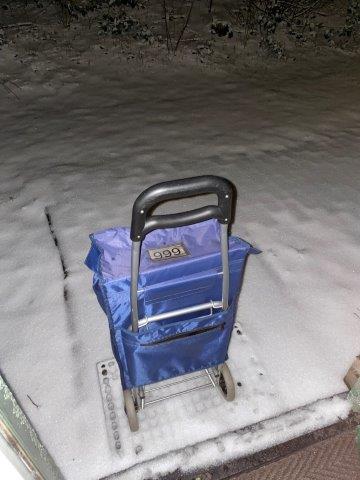 Ik zet nog wel even de boodschappen trolley buiten in de avond zodat de broodjes service hem in de vroege ochtend kan vullen met verse broodjes.