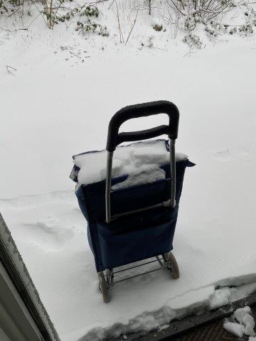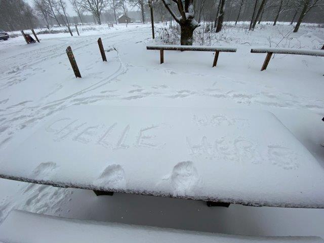 Als ik de deur open doe ben ik verrast. Heey dr is veel meer sneeuw gevallen dan we dachten.