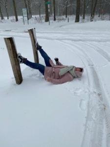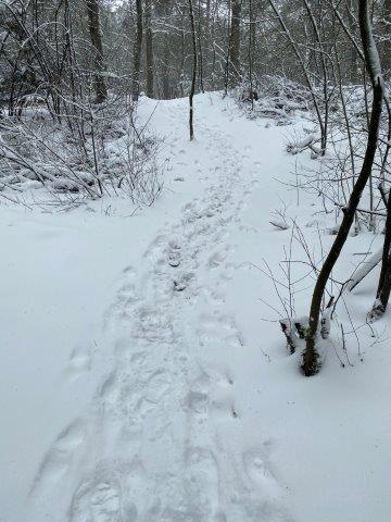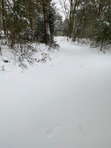 De bossen zien er prachtig mooi uit met de sneeuw dus maken we nog een flinke wandeling.