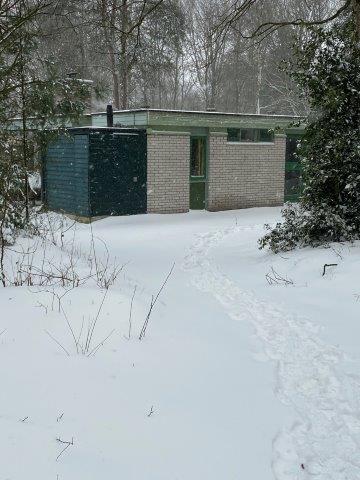 We boeken een ‘luxe’ huisje voor zover je van luxe mag spreken, met een sauna, netflix en een openhaard.