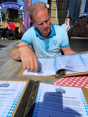 Manlief is helemaal in de gloria. We moeten wel buiten zitten door de maatregelen maar dat maakt allemaal niet uit…. hij heeft schnitzel!