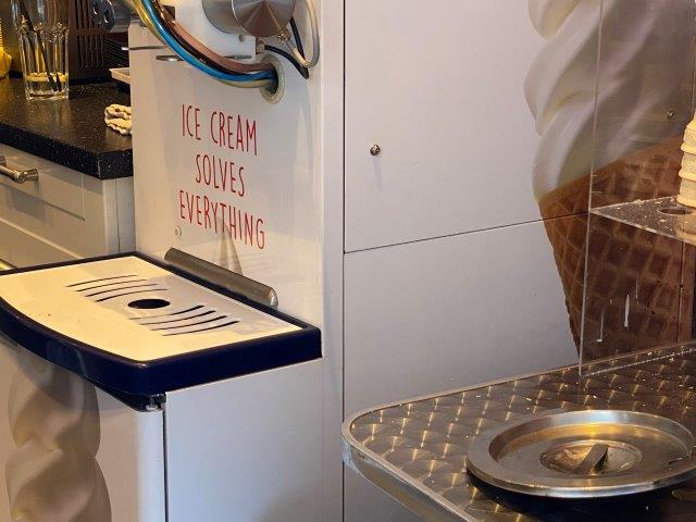 Daarna lopen we nog even bij de ijsboer langs voor een ijsje en zie ik de juiste tekst voorbij komen.