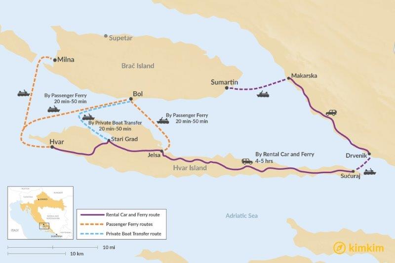 Als de laatste dag aanbreekt op Brač, rijden we naar Supetar om vanuit daar de ferry naar Split terug te nemen en zo over het vaste land richting Drvenik. Hier vandaan vertrekt onze ferry naar Sućuraj Hvar.