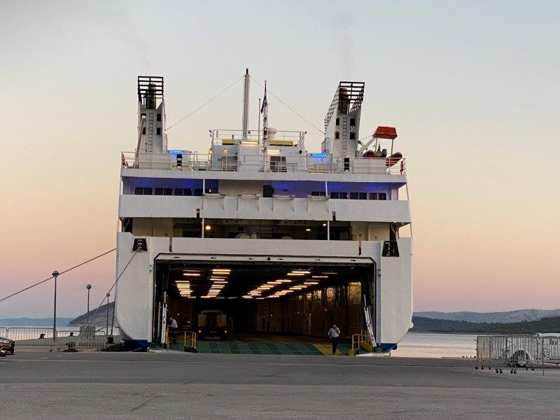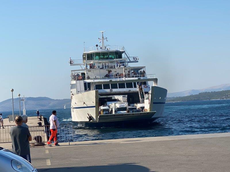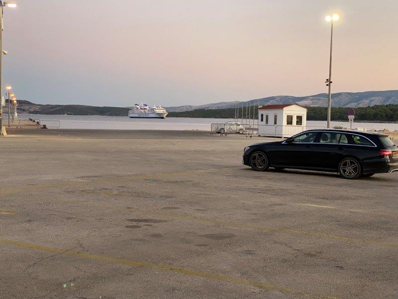 Aangekomen in Makarska bij de ferry parkeren we de auto in de wachtrij om voor de ferry om een kaartje te kopen.