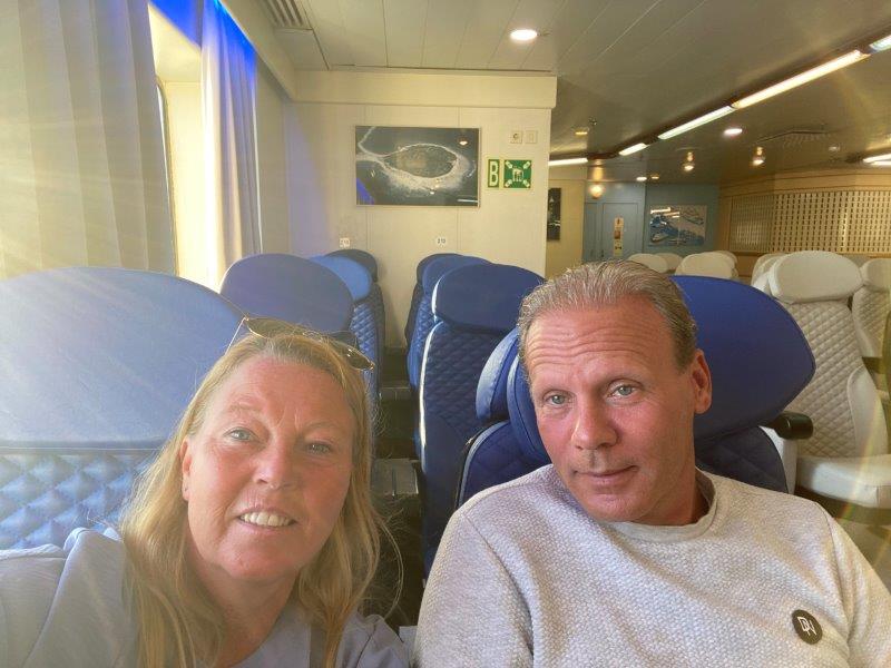 Ook hier is het wederom belachelijk druk valt ons op, wat is er toch gaande? En dan blijkt dat er voor die dag geen kaarten meer te koop zijn, behalve de late avond ferry die in ons geval te laat is, ivm. aankomsttijd op het eiland en nog een stukje reistijd over het eiland.