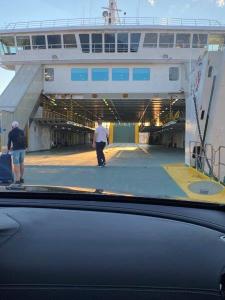 Als we eenmaal op de ferry zitten zoek ik een onderkomen uit.