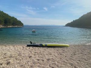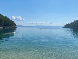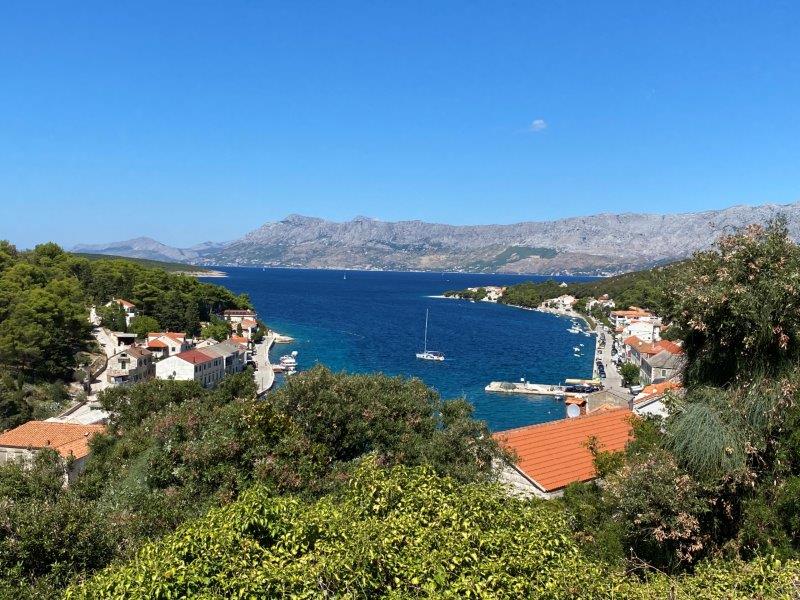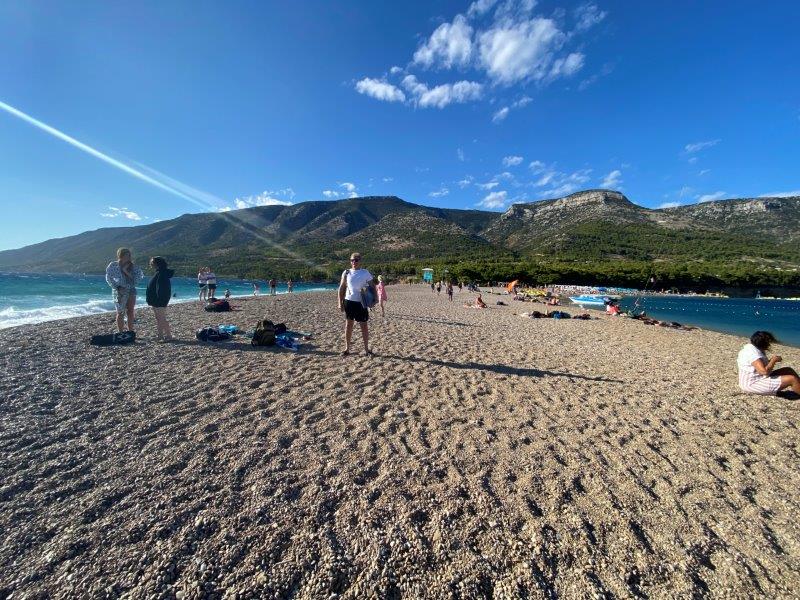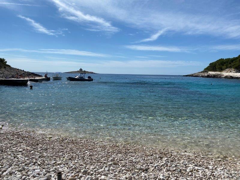We drinken wat op een terras om daarna lekker via de promenade naar het strand te gaan waar we de dag doorbrengen. Het leuke is wel dat we vanaf dit eiland Hvar zien liggen. We kijken tegen de plaats Stari Grad en Vrboska aan.