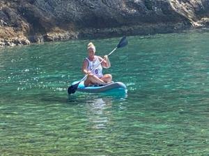 Als we afmeren in Steniva bay blijken we dan toch bijna een afvaller te hebben. Dochterlief wil niet mee zwemmen door de kloof richting het mooie strand.