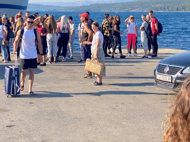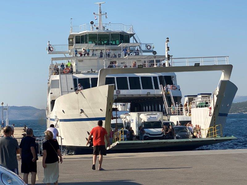 Het is nog geen 8 uur als wij al op de ferry zitten. De tortellinies pakken een taxi boot naar Hvar stad en dan het vliegtuig.