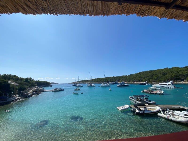 Eerst hadden we een afgelegen baai zonder voorzieningen en nu zitten we in Hvar stad waar er enorme reuring is.